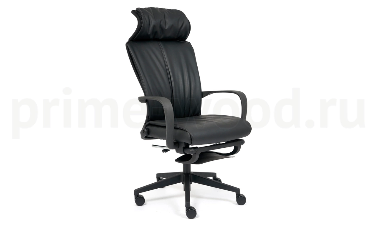 Механизм реклайнер 150 град., регулировка высоты. Подлокотники - фиксированные пластиковые. Выдвижная подставка для ног, фиксированный подголовник, регулируемая по высоте поясничная поддержка. Крестовина черный металл. Ролики - прорезиненные. Максимальная нагрузка 120 кг.