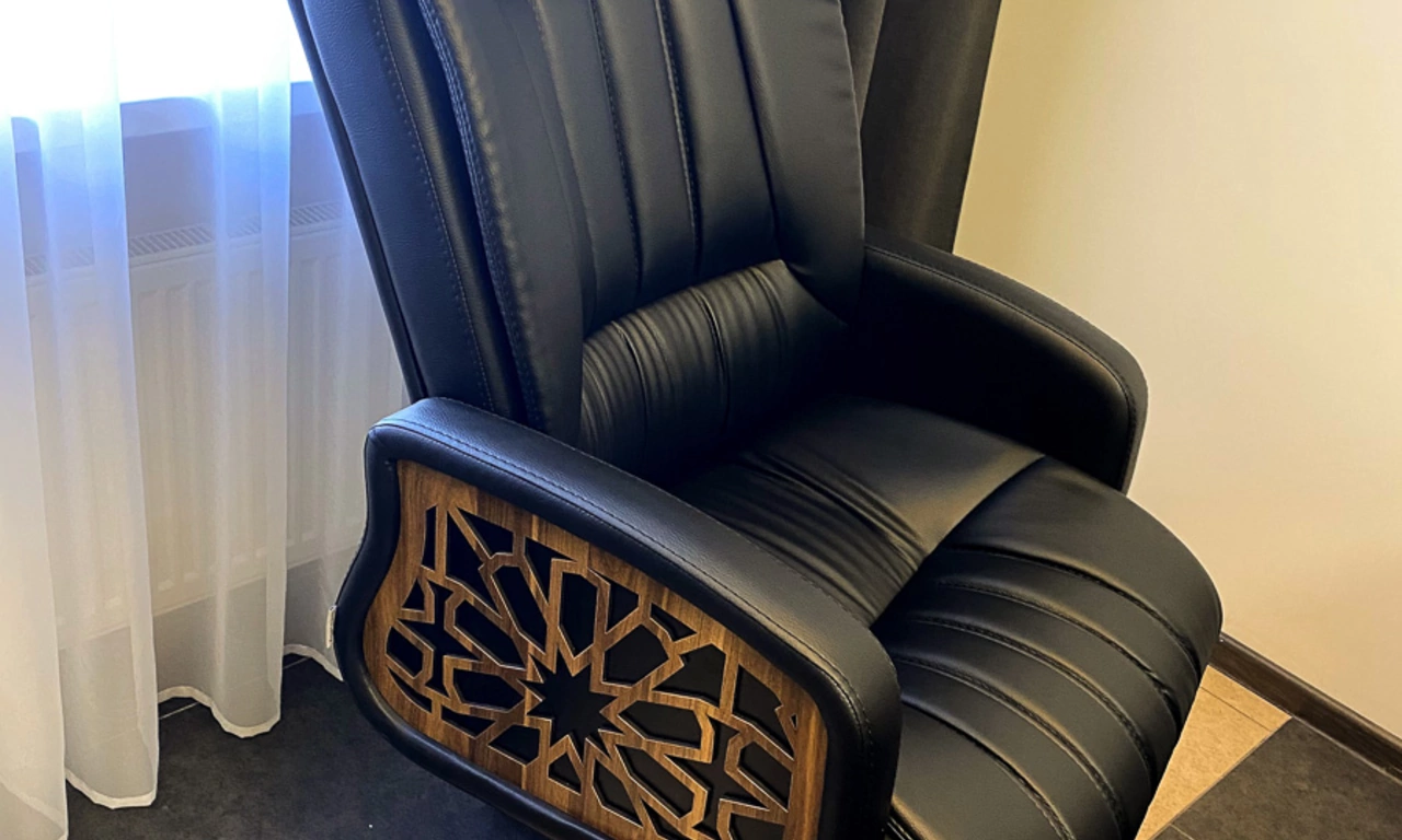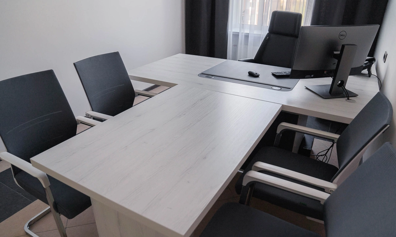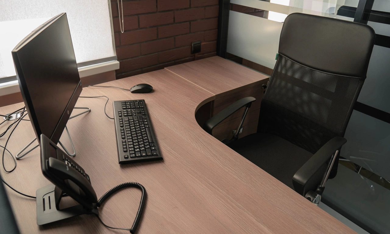 Для более консервативного коллеги из соседнего кабинета отлично подошёл тот же Time.S, но в строгом оттенке дерева "палдао" в паре с классическим креслом Royal.