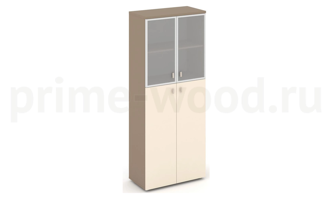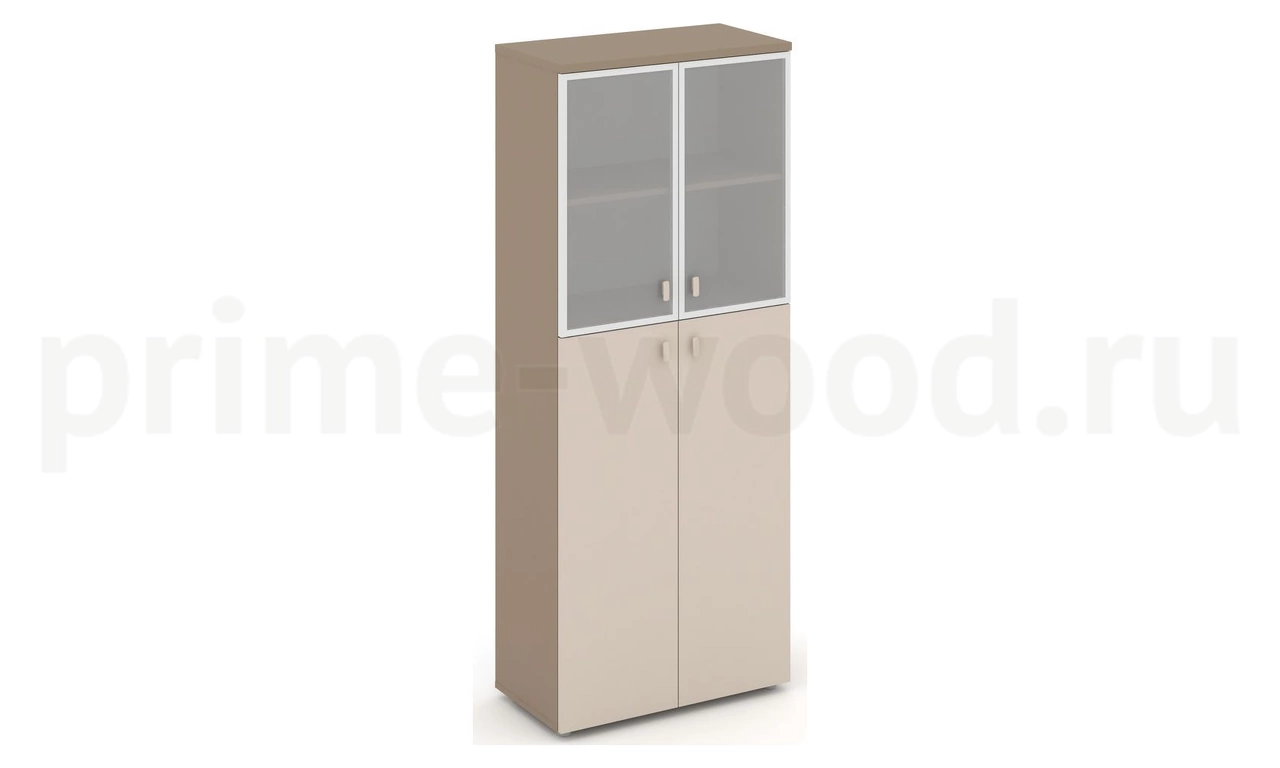 Шкаф высокий широкий (2 средних фасада ЛДСП + 2 низких фасада стекло в раме сатин матовый)