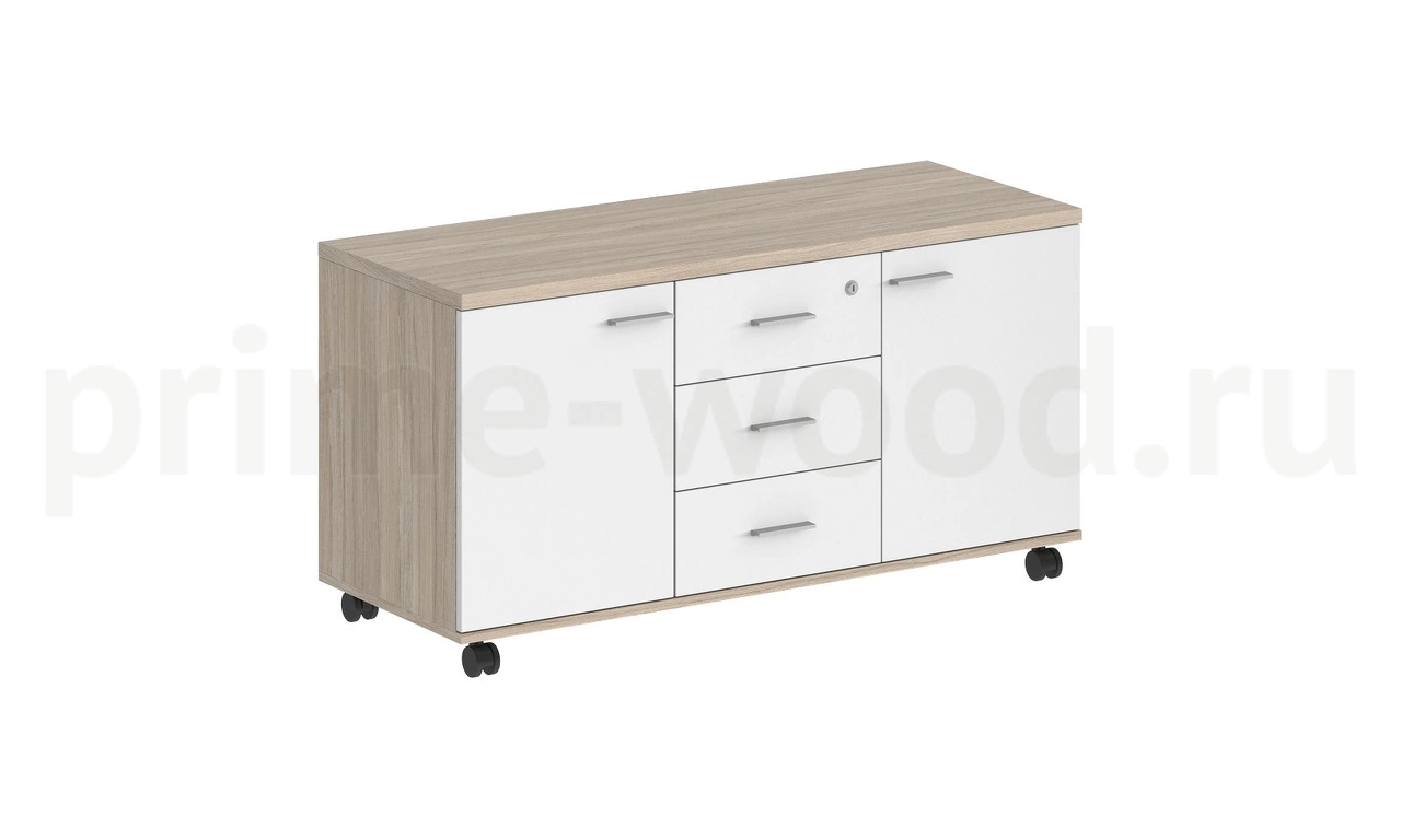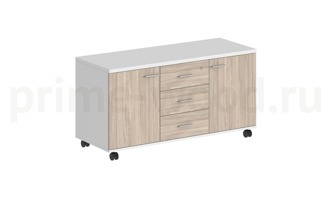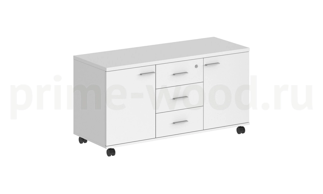 Тумба сервисная на колёсиках с 3 ящиками, с замком, 2 фасадами, ящики ЛДСП на роликовых направляющих.