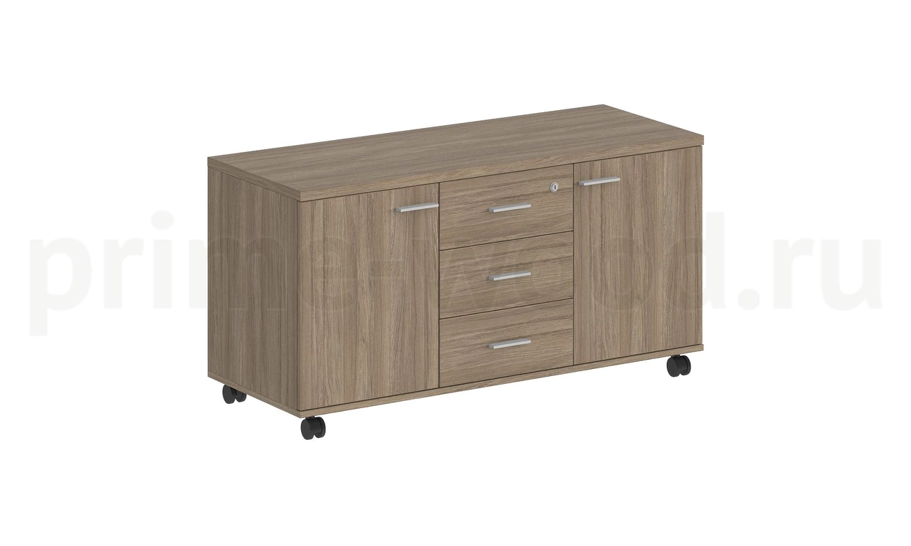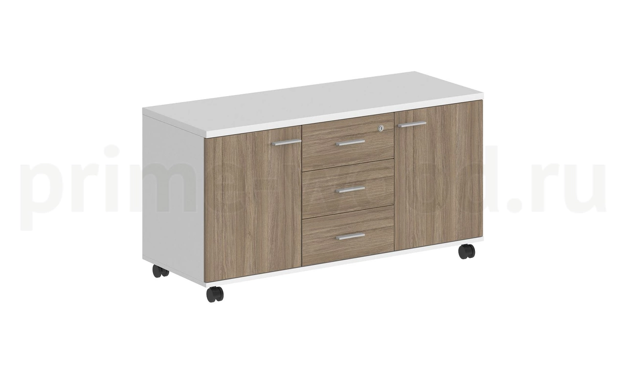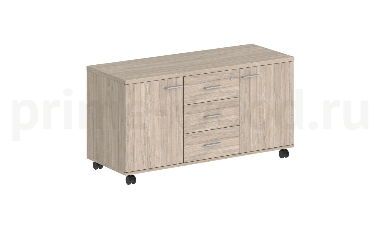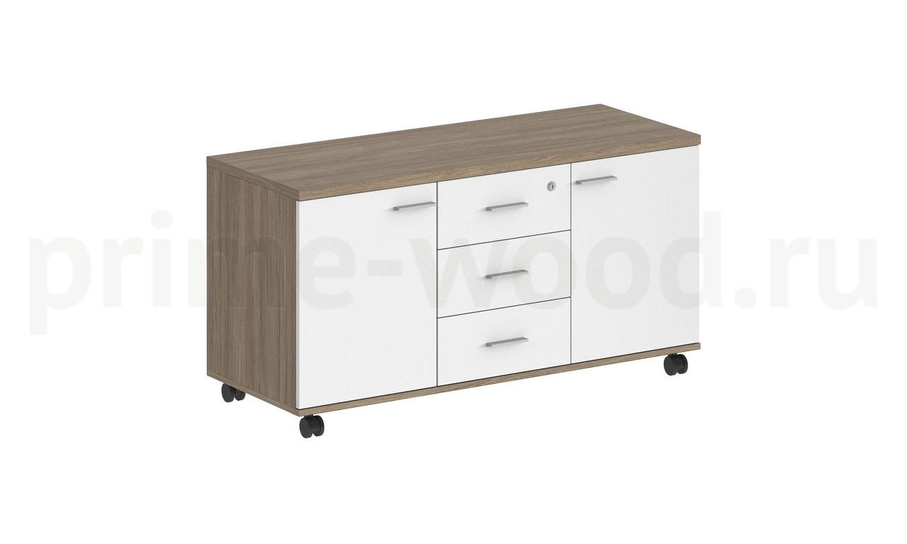 Тумба сервисная на колёсиках с 3 ящиками, с замком, 2 фасадами, ящики ЛДСП на роликовых направляющих.